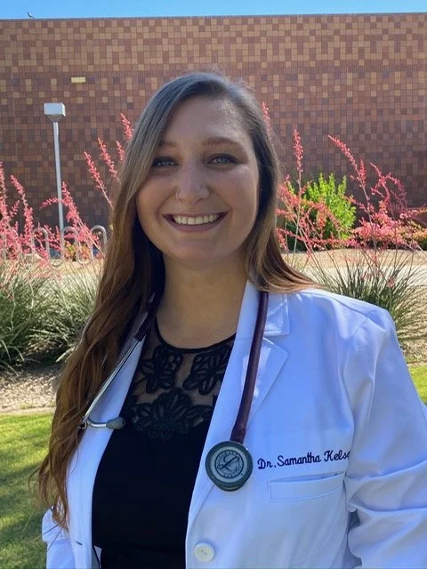 Dr. Samantha Kelsey grew up in Ohio and dreamt of being a veterinarian since she was young. She volunteered with rescues and shelters and became a veterinary technician in college. She obtained her undergraduate degree in Biology from Mount St. Joseph University in Cincinnati, OH and her DVM from Midwestern University. She became a Certified Canine Rehabilitation Veterinarian (CCRV) from Chi University. Her special interests include geriatric patient care, pain management, dermatology, and soft tissue surgery. She is a member of the American Veterinary Medical Association, Arizona Veterinary Medical Association, and the International Veterinary Academy of Pain Management.